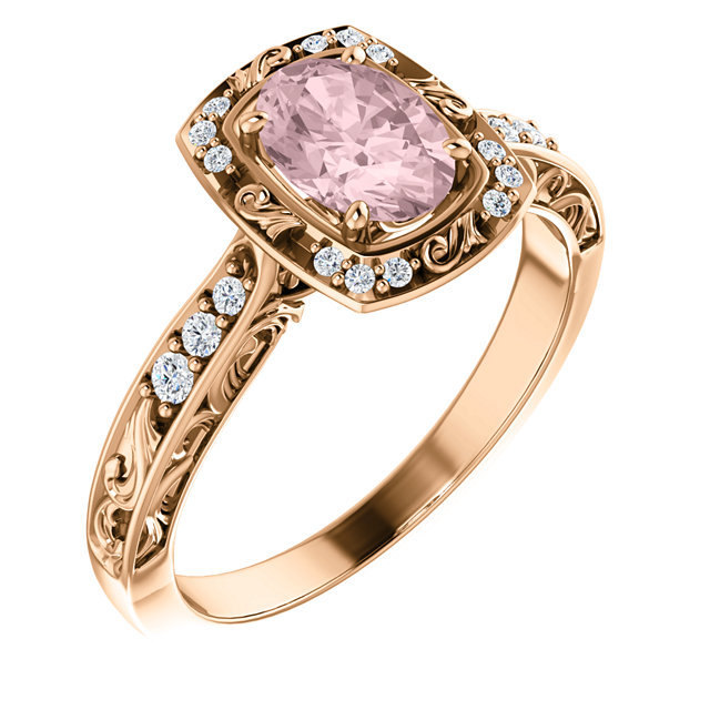 Oval morganite & diamond halo engagement ring in 14k rose gold the store will not work correctly in the case when cookies are disabled.